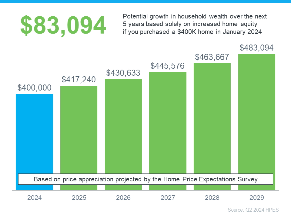 In this example, letâs say you went ahead and bought a $400,000 home at the beginning of this year. Based on the expert forecasts from the HPES, you could gain more than $83,000 in household wealth over the next five years. Thatâs not a small number.