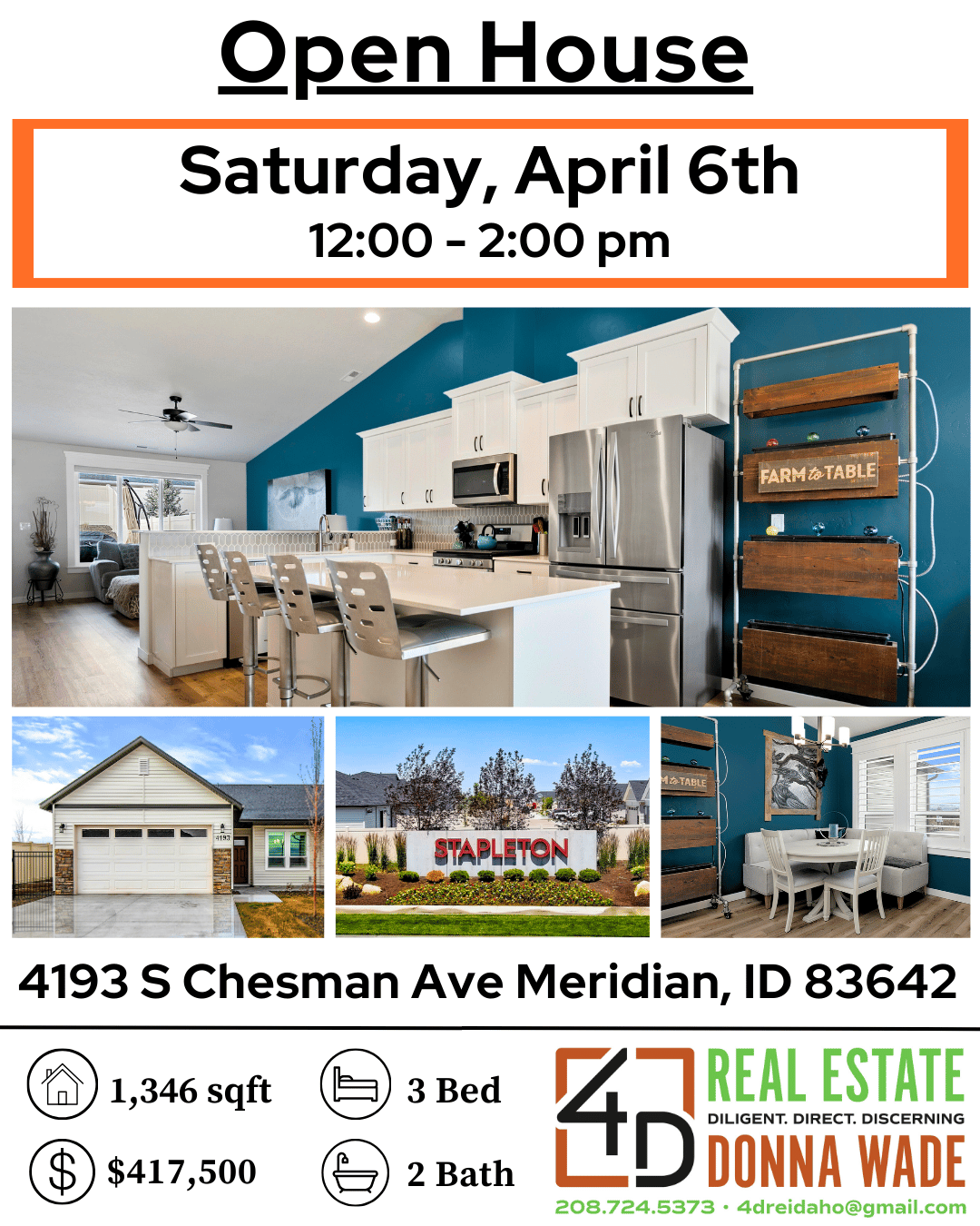 I'm hosting an Open House at 4193 S Chesman Ave, Meridian, ID 83642 on Saturday, April 6th from 12:00 pm to 2:00 pm, and you are officially invited! 🎉